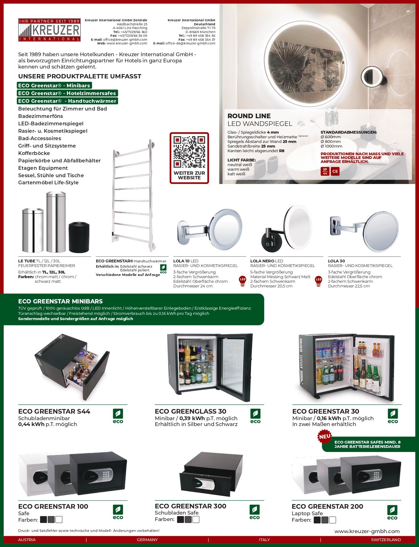 Mit der ECO GREENSTAR Serie setzt Kreuzer International auf Qualität, Nachhaltigkeit und Komfort – ein Angebot, das den Anforderungen moderner Hotellerie und Gesundheitseinrichtungen gleichermaßen gerecht wird.