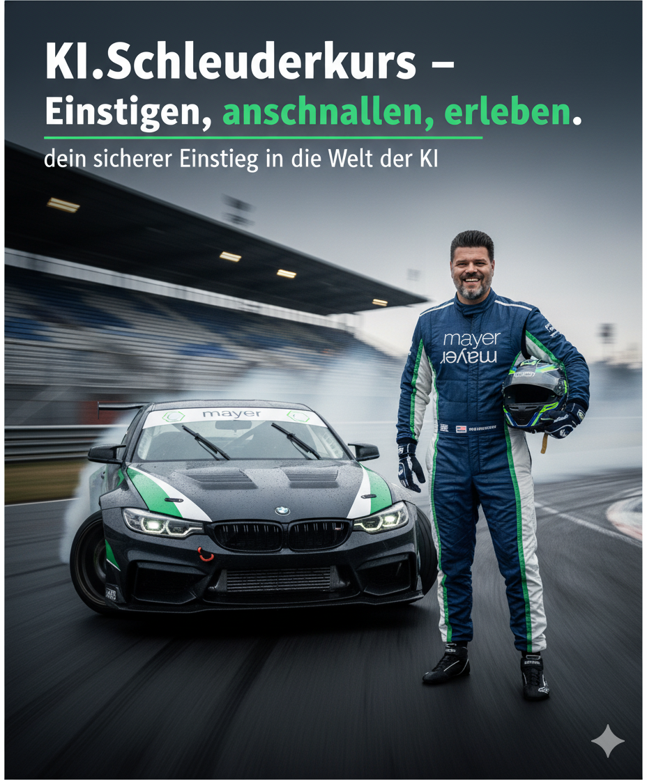 Seit 2023 betreibt mayermayer die KI-Fahrschule – powered by mayermayer. Im Mittelpunkt steht nicht Technik um der Technik willen, sondern die Frage:
