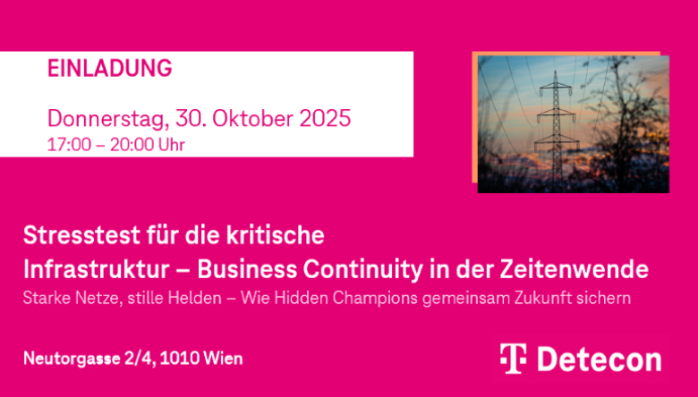 Unser Mitglied Detecon lädt erneut zu einem spannenden Austausch über die Zukunftssicherheit zentraler Systeme ein. Unter dem Motto „Starke Netze, stille Helden – Wie Hidden Champions gemeinsam Zukunft sichern“ beleuchtet die Veranstaltung aktuelle Herausforderungen und Lösungsansätze zur Aufrechterhaltung von Business Continuity in Zeiten wachsender Krisen.